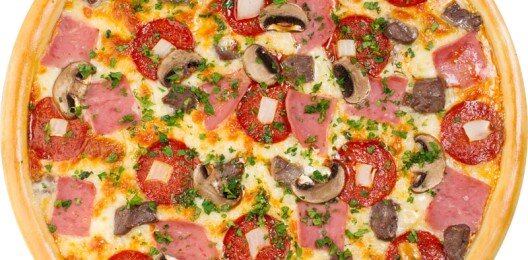 Горчичный соус, сыр моцарелла, охотничьи колбаски, пепперони, помидоры, халапеньо, зелень Соус к пицце идет в подарок