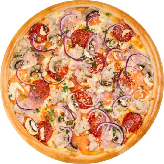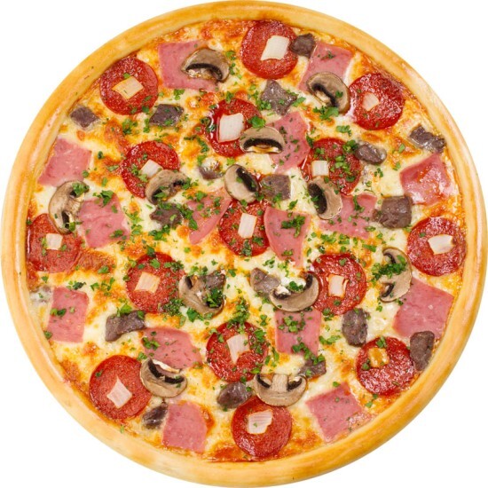 Шеф соус, моцарелла, ветчина, шампиньоны Соус к пицце идет в подарок